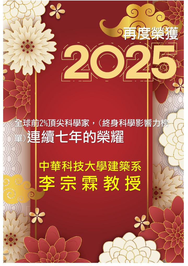 114/09/23 | 恭喜本系李宗霖教授連續7年榮獲全球前2%尖端科學家詳如附件 | |